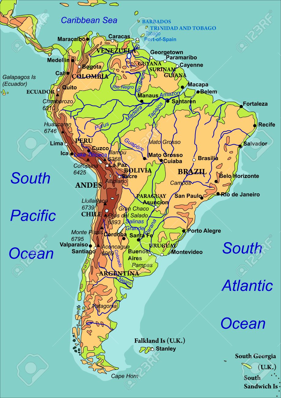 CARTINA FISICA AMERICA DEL SUD | America latina, America, Sud america