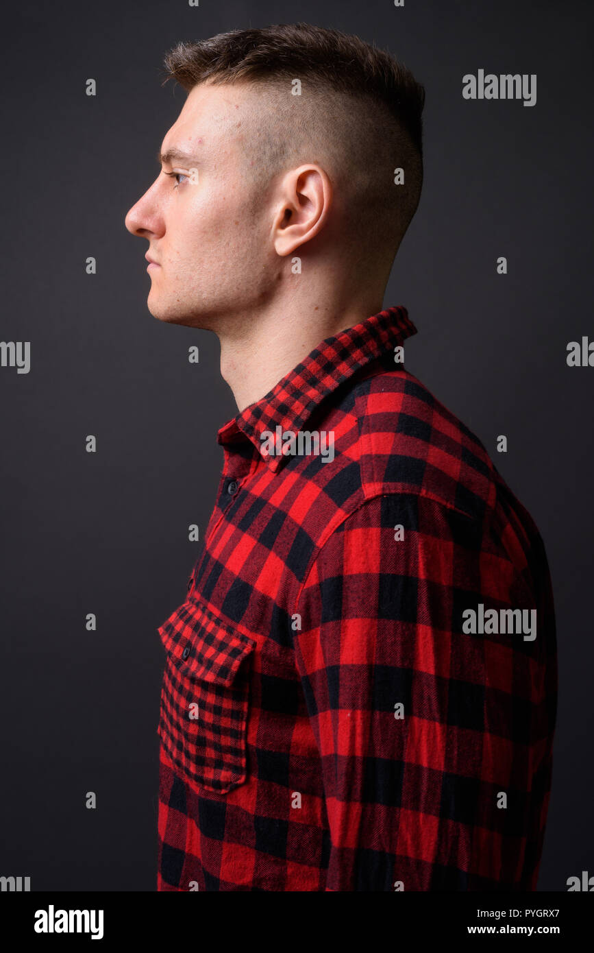 Immagini Stock - Un Ritratto Di Profilo Di Un Giovane Uomo Bello Con Il Hairdo Alla Moda Alla Moda Contro Priorità Bassa Grigia. Image 74136974