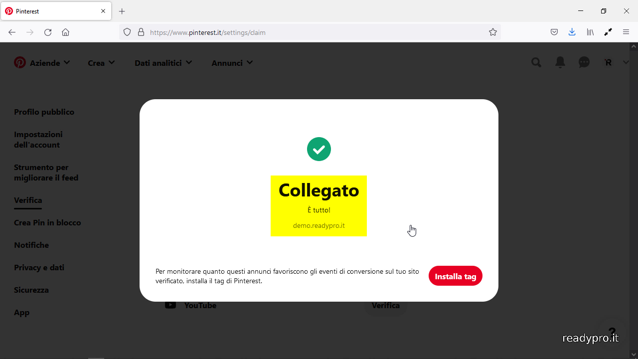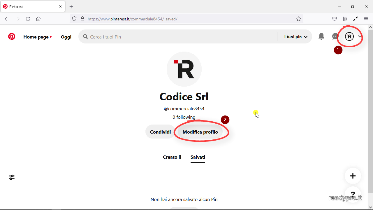 Plugin Pinterest - Creare un nuovo account Pinterest Business - Ready Pro - Manuale utente