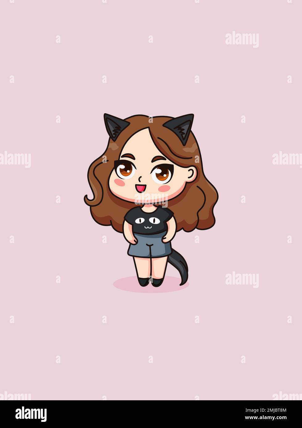 Sfondi : illustrazione, capelli lunghi, nekomimi, anime girls, ragazza gatto, orecchie degli animali, brunetta, capelli neri, occhi marroni, personaggi originali, tristezza, orecchie di gatto, capi di abbigliamento, capo, costume, acconciatura 1920x1080 -