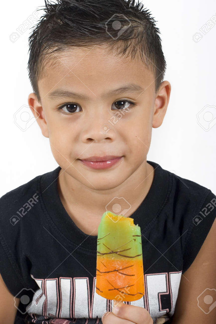 Immagini Stock - Eurasian Cinese Gode Di Un Ragazzo Di Colore In Più Aiscream. Image 3852424