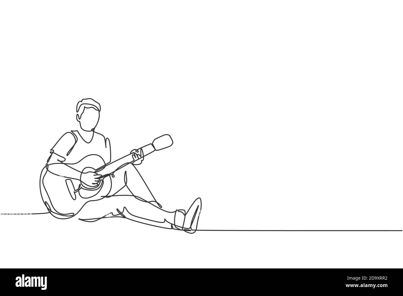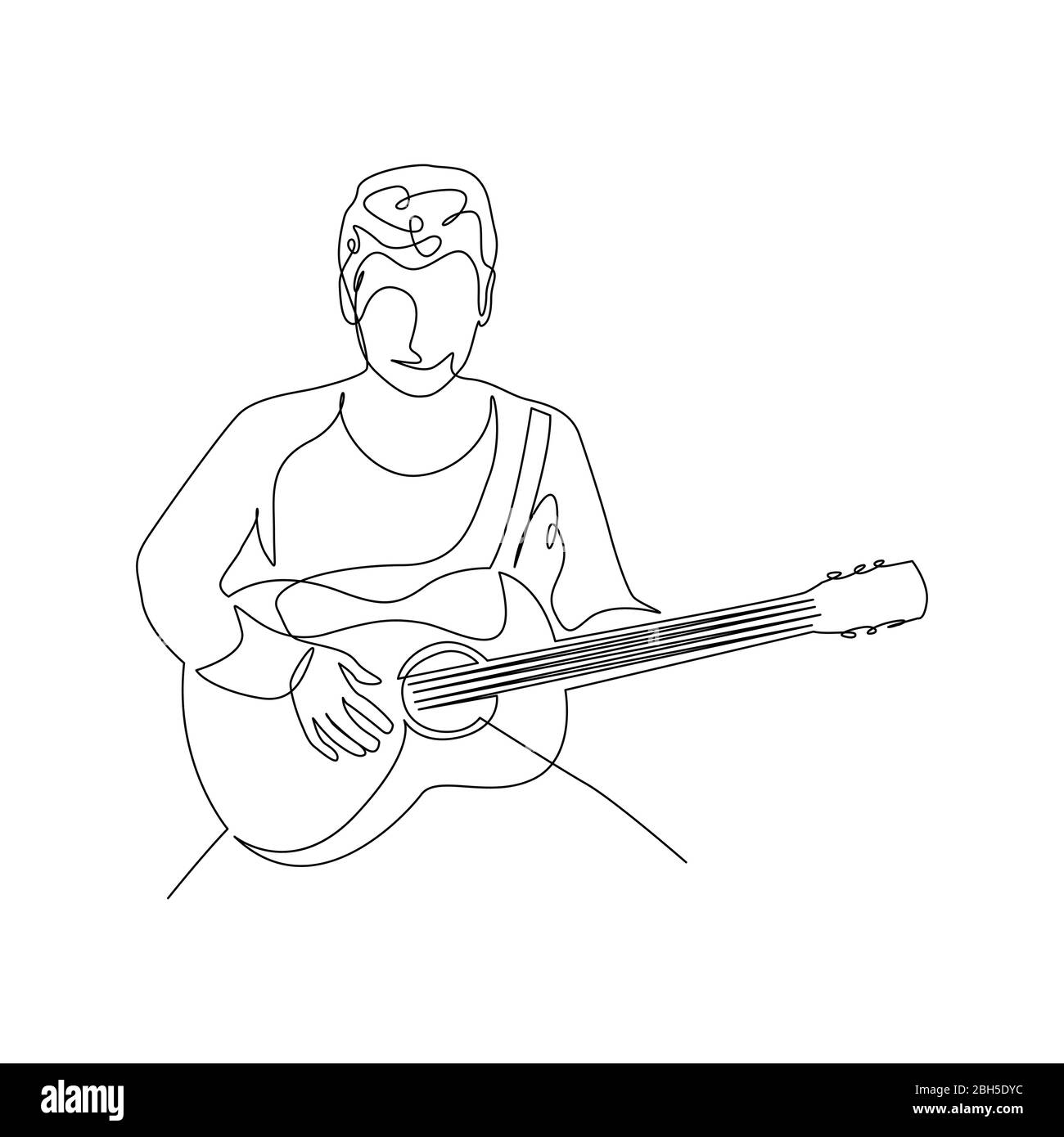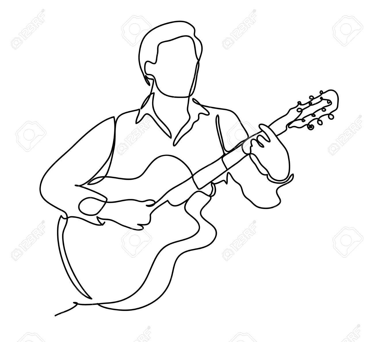 SVG, Vettoriale - Il Ragazzo Che Suona La Chitarra. Illustrazione Vettoriale Isolato Su Sfondo Bianco Disegno A Tratteggio Continuo. Monocromatico Vettoriale, Disegno Di Linee.. Image 99196894
