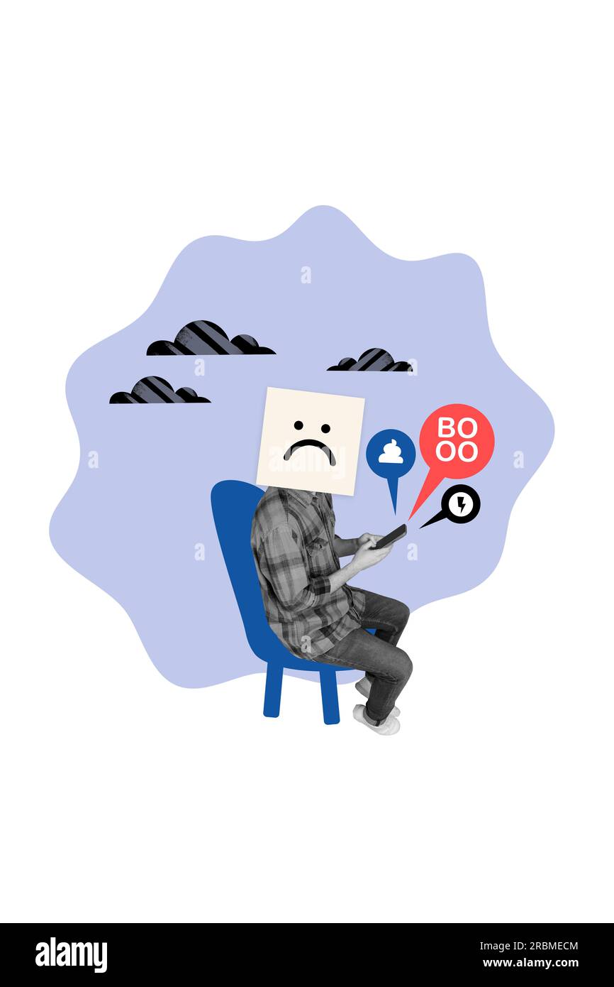 Immagine collage di schizzi illustrazione di senza testa infelice triste antipatico emoji Internet commenti negativi vergogna isolato sullo sfondo del disegno Foto stock - Alamy