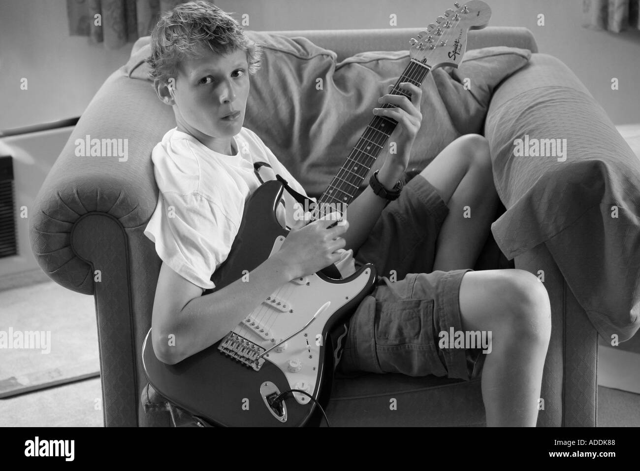 Ragazzo che suona una chitarra Foto e Immagini Stock in Bianco e Nero - Alamy