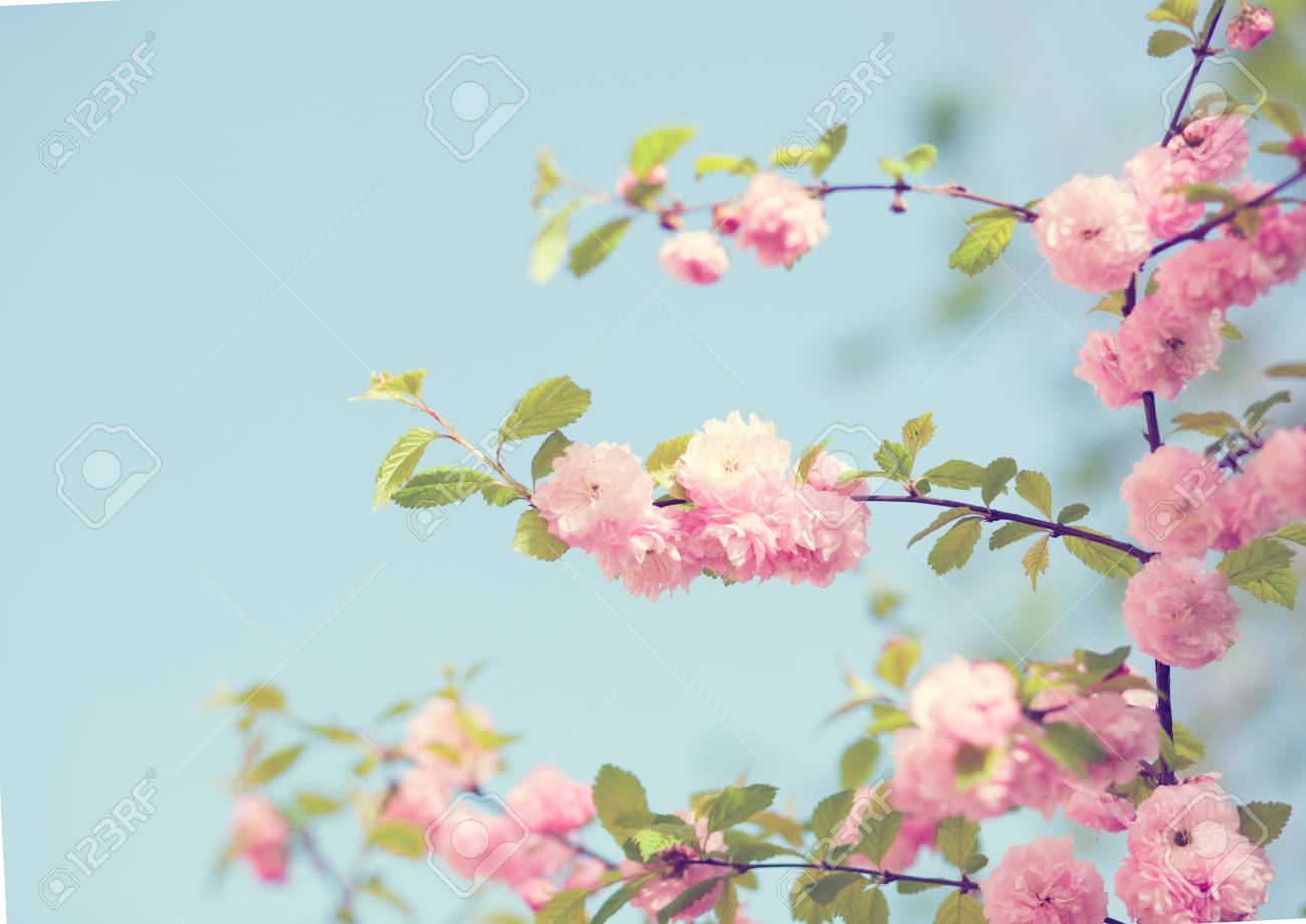 Immagini Stock - Un Ramo Con Bellissimi Fiori Rosa Contro Il Cielo Blu. Amygdalus Triloba. Profondità Di Campo, Si Concentrano Sul Ramo Centrale. Tonica Immagine.. Image 35757234.