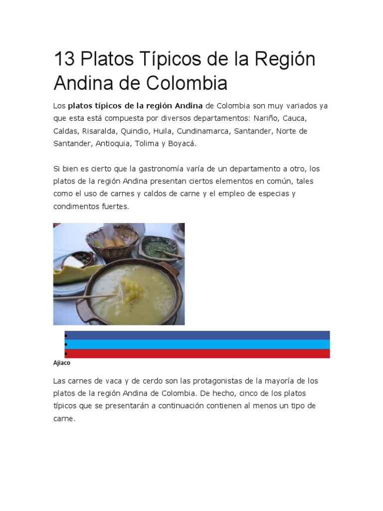13 Platos Típicos de La Región Andina de Colombia | PDF | Sopa | Cerdo