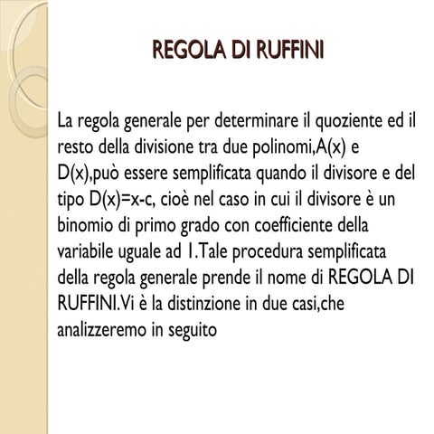 Regola di ruffini | PPT