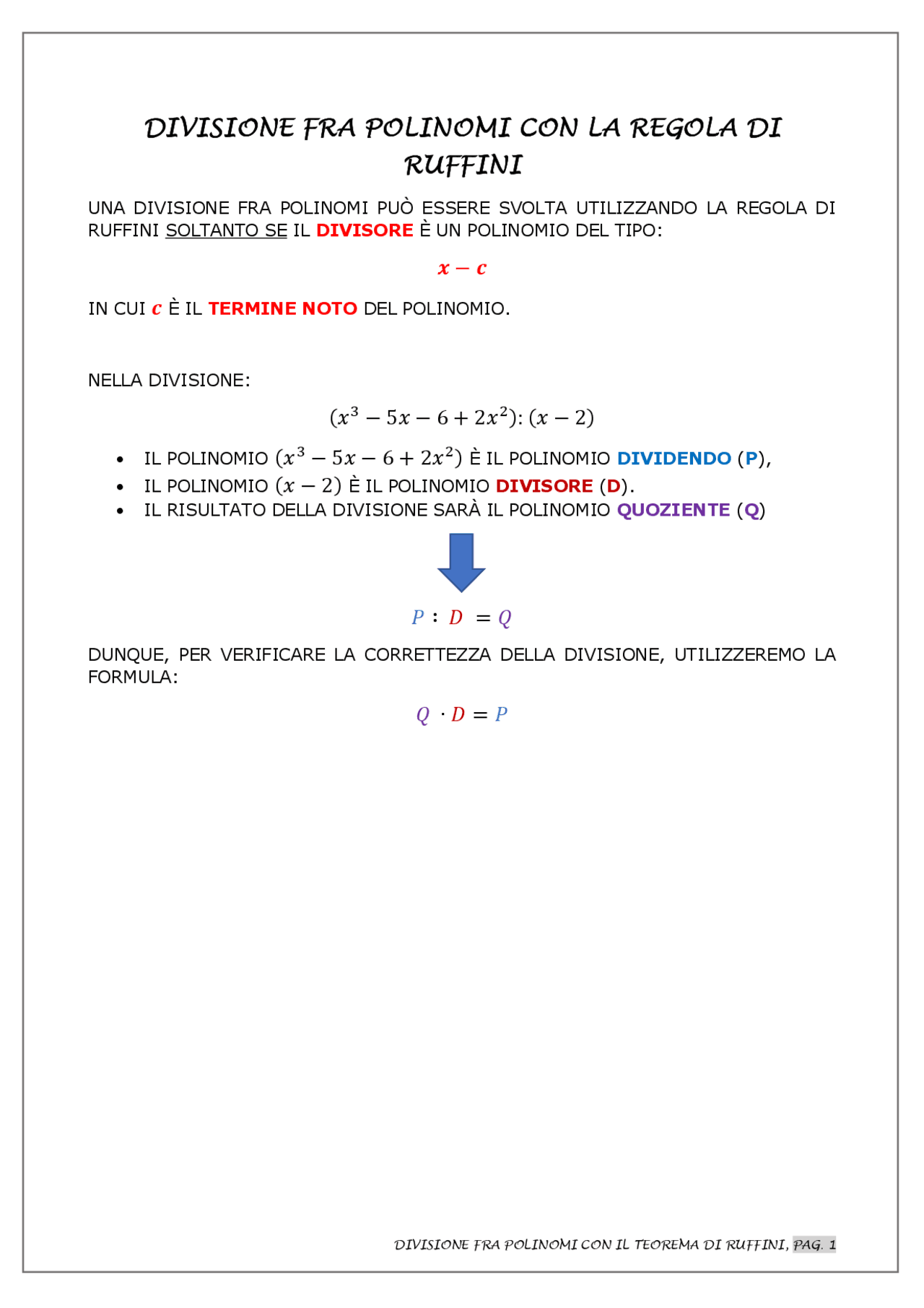 Regola di Ruffini spiegata passo passo | Dispense di Matematica | Docsity