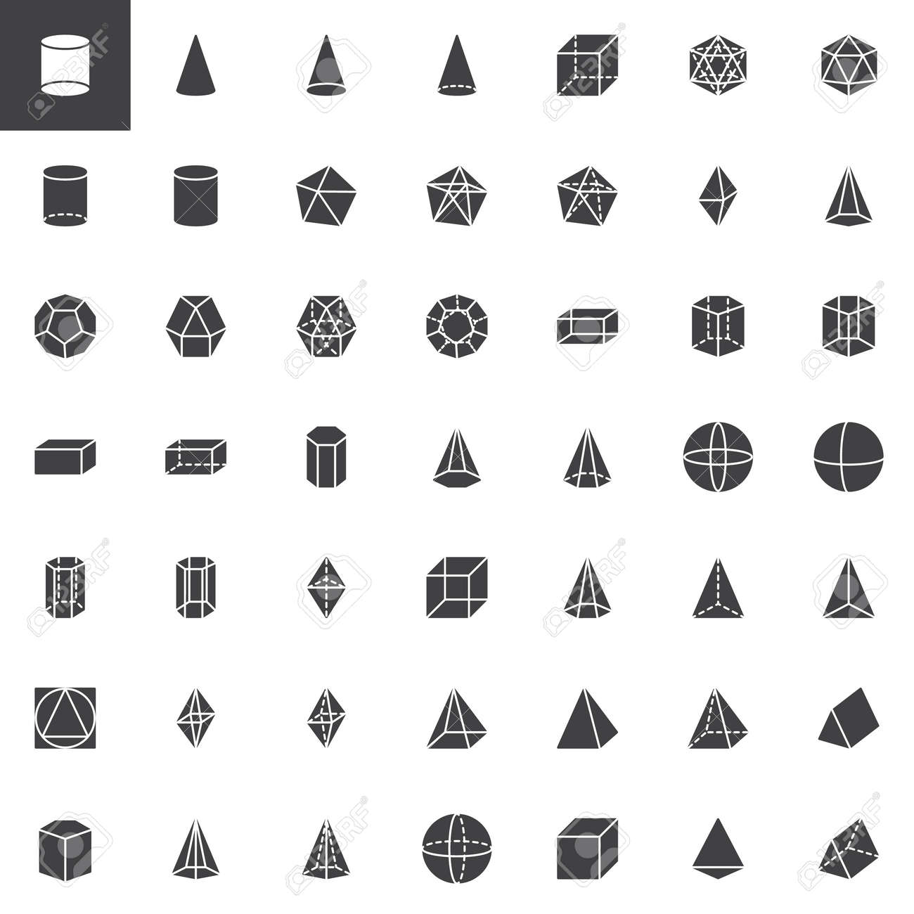 SVG, Vettoriale - Set Di Icone Vettoriali Di Forme Geometriche, Raccolta Di Simboli Solidi Moderni, Pacchetto Di Pittogrammi In Stile Pieno. Segni, Illustrazione Del Logo. Il Set Include Icone Come Cilindro, Cono,