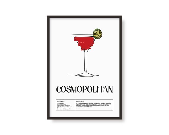 Stampa cocktail cosmopolita / Cocktail classici Mixology / Cucina Cocktail Art / Ricetta cocktail / Guida cocktail / Regalo bar / Decorazioni per la casa - Etsy Italia