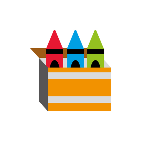 Impostare pastelli a cera in scatola di cartone in stile cartone animato isolato su bianco | Vettore Premium