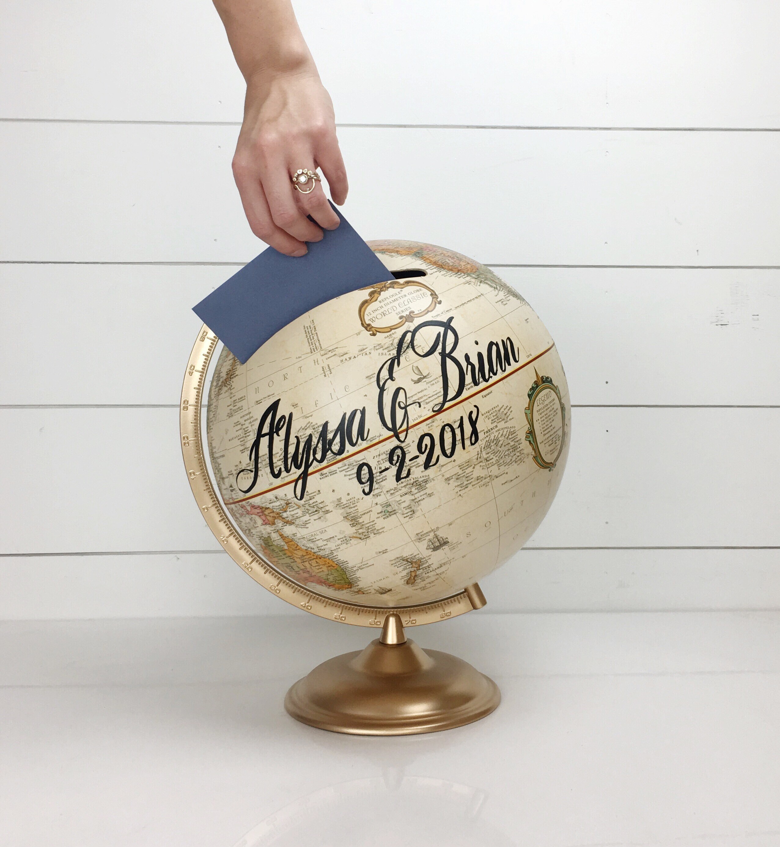 Wedding Card or Ballot Box World Map Globe With Custom ...