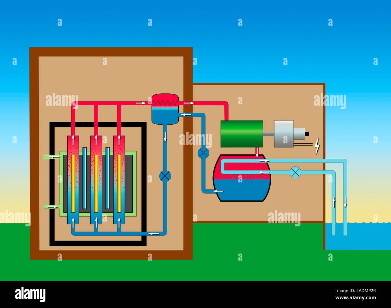Reattori del tipo RBMK reattore nucleare. Schema di funzionamento di un tipo RBMK reattori nucleari del tipo utilizzato nella centrale di Cernobil. In questo reattore, il nucleo comp Foto stock - Alamy