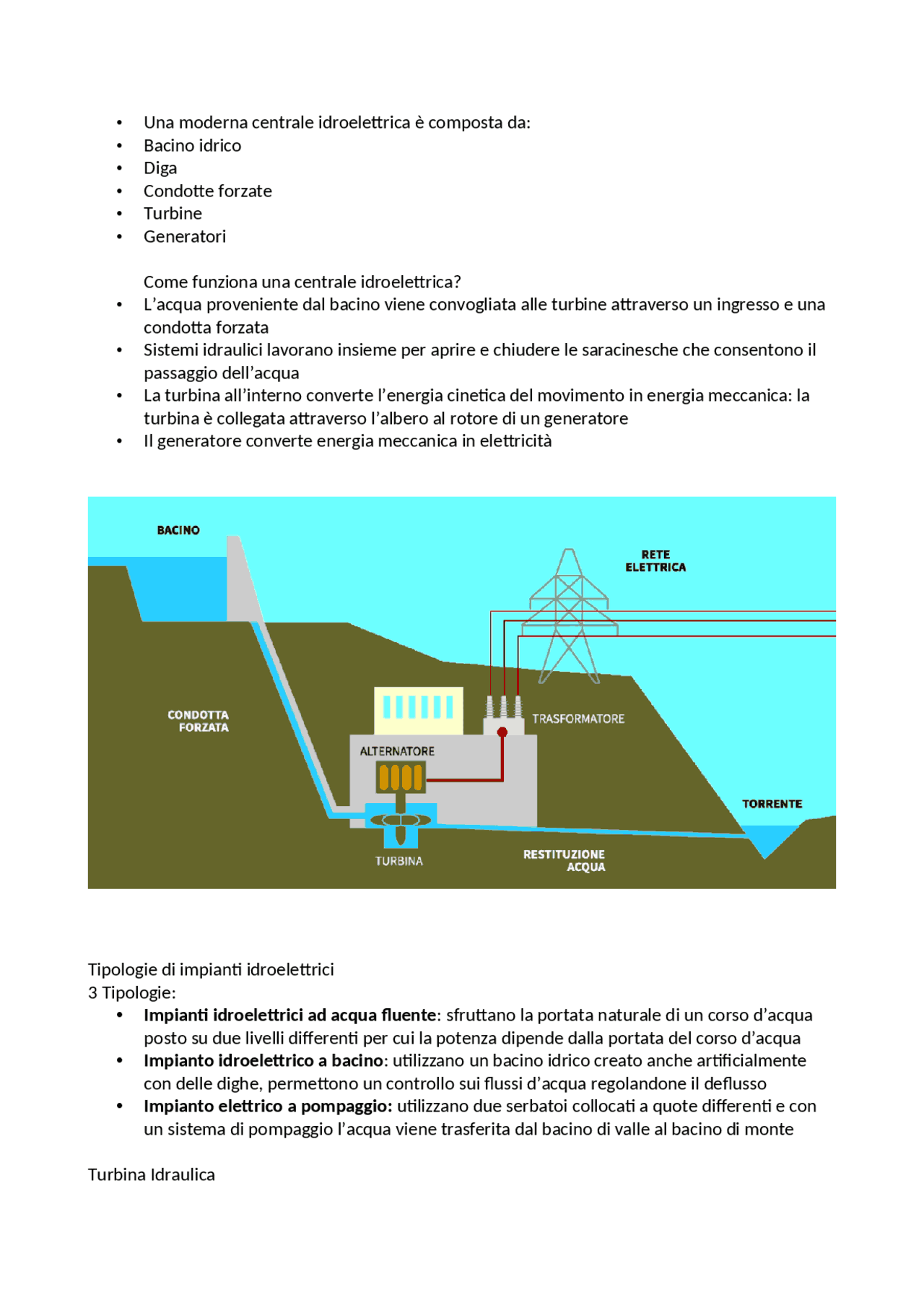 Energia Idroelettrica ricerca | Schemi e mappe concettuali di Fisica | Docsity