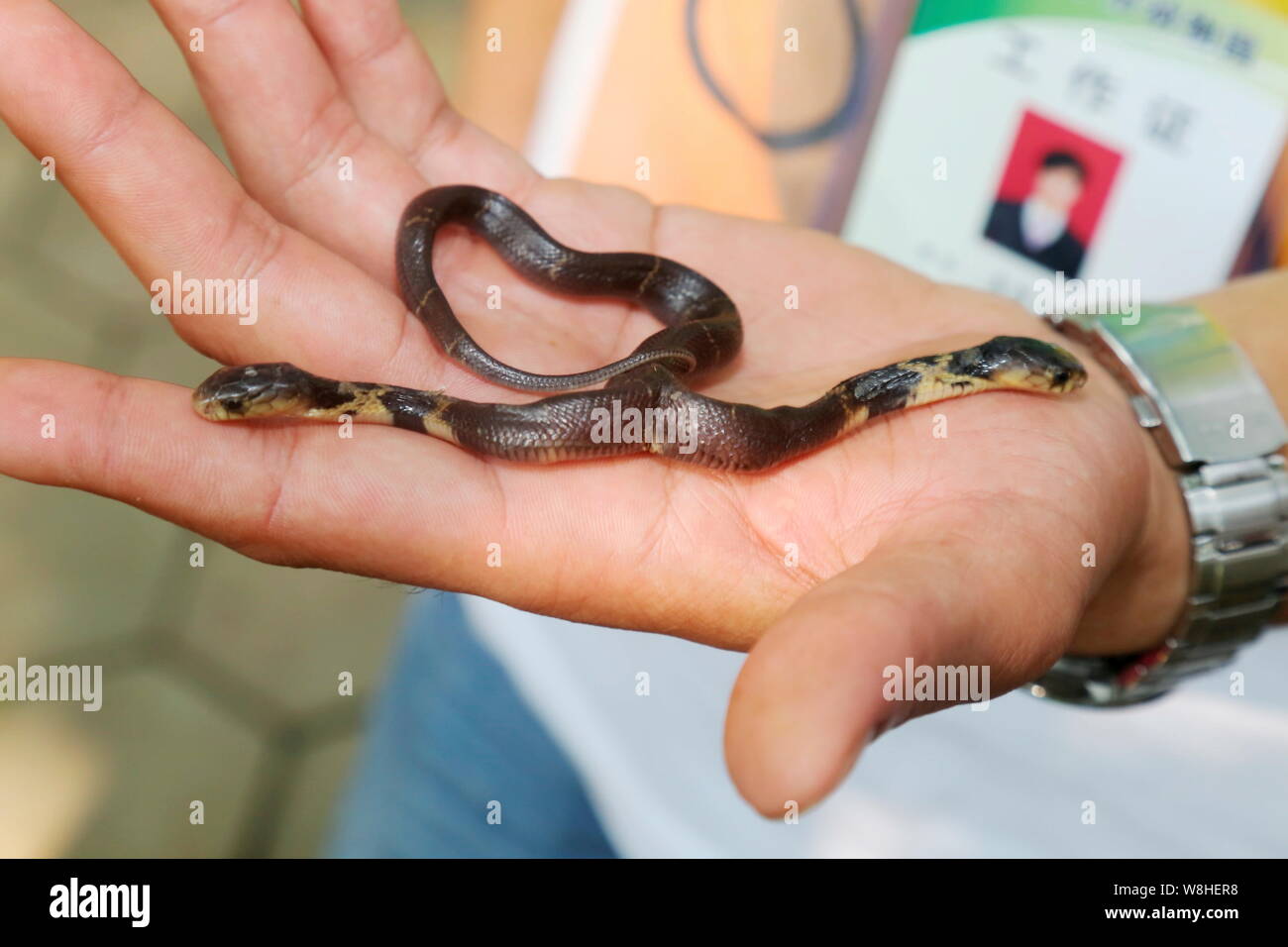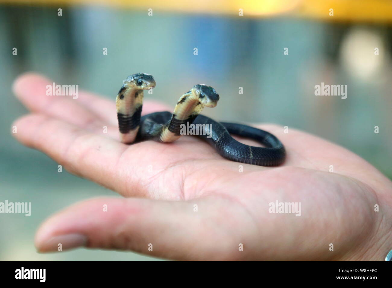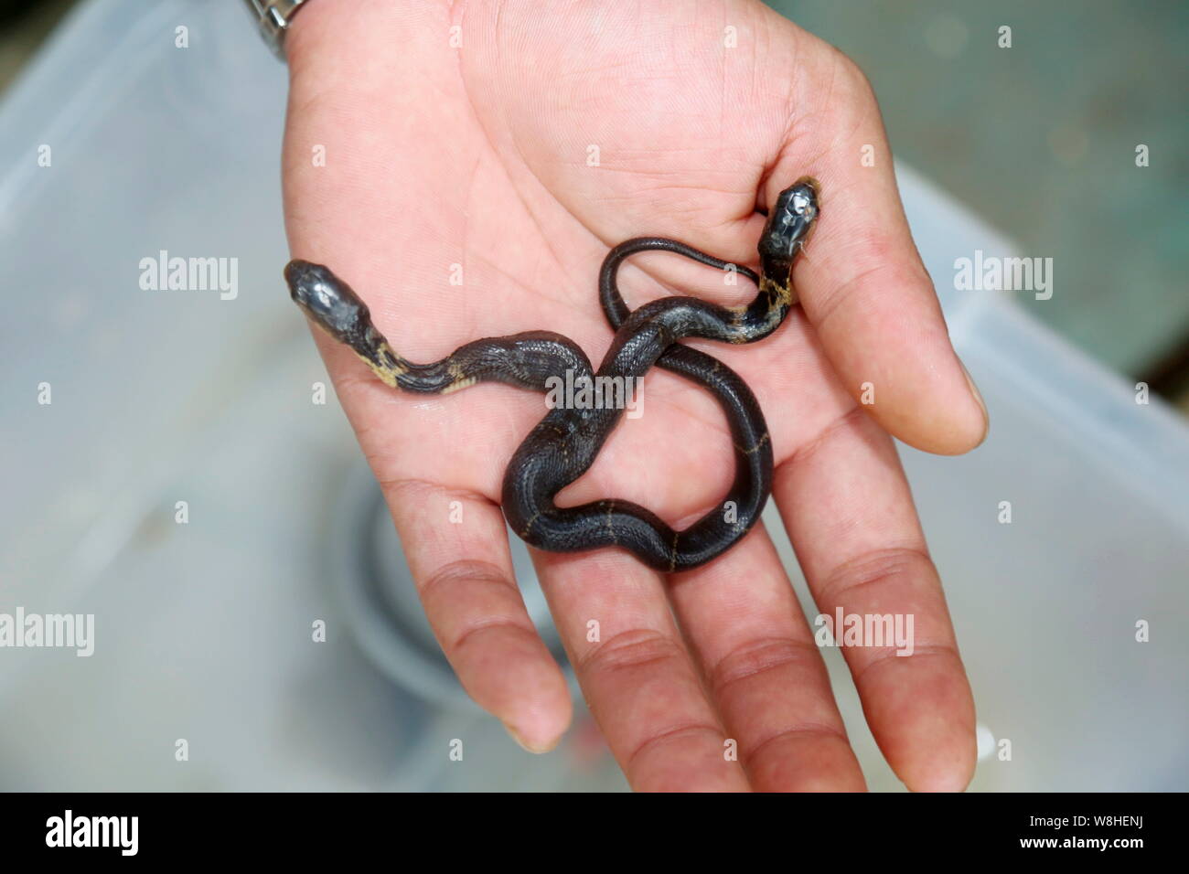 Questo a due teste cobra è stata tratteggiata in Jiujiang, Jiangxi, Cina. Il serpente è di circa quaranta centimetri di lunghezza. Le due teste entrambi Foto stock - Alamy