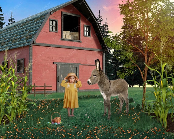 Sfondo digitale della fattoria ottimo per Pasqua. Asino e - Etsy Italia