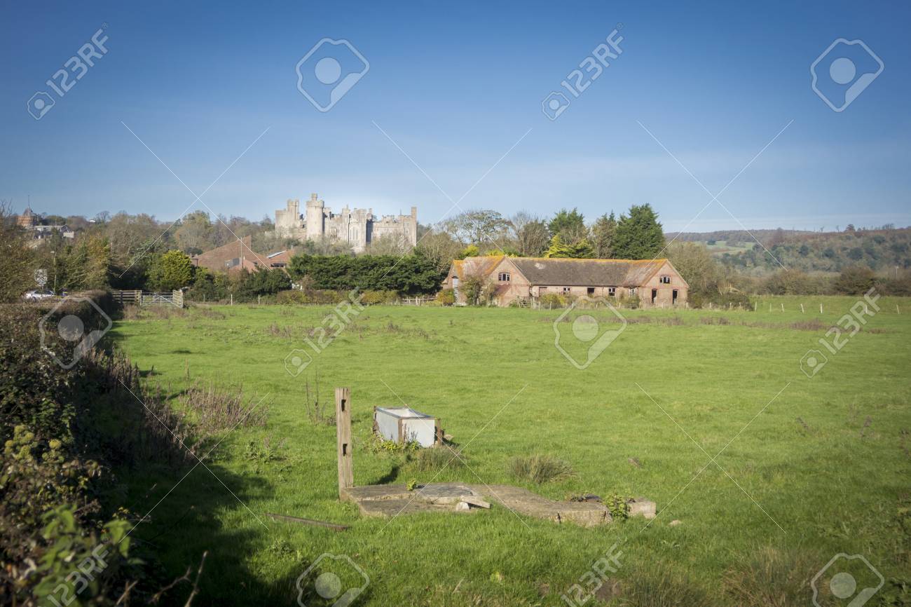 Immagini Stock - Campagna Del Sussex Con Una Fattoria Abbandonata E Castello Di Arundel Sullo Sfondo. Image 84382208