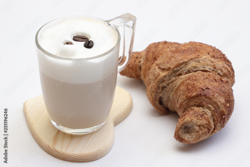 Cappuccio e Brioche su sfondo bianco, Cappuccino and Brioche on a white background Stock Photo | Adobe Stock