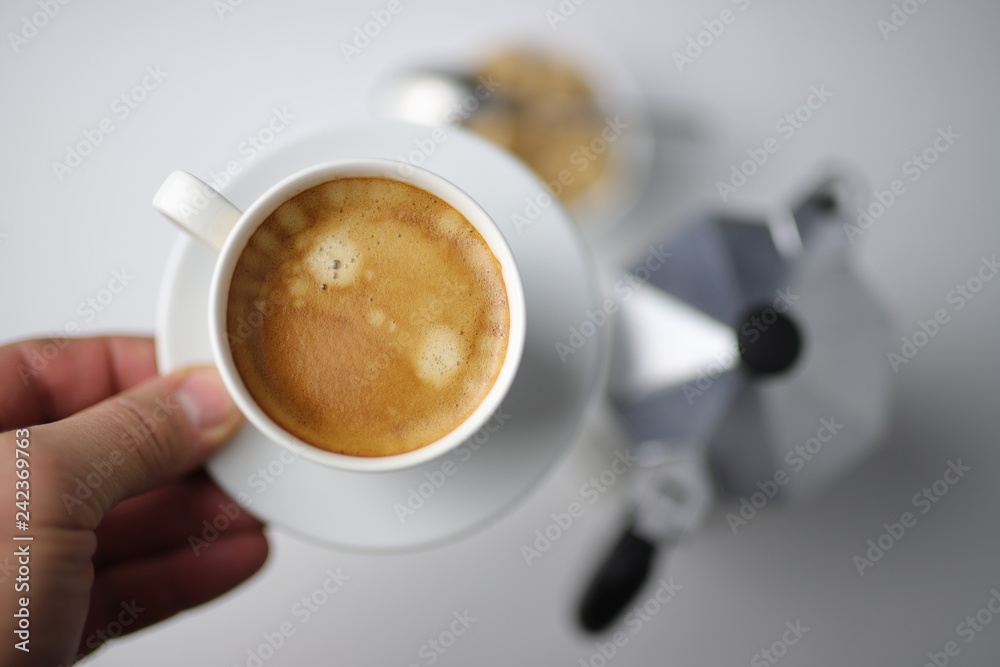 Caffè espresso in tazza su sfondo bianco Stock Photo | Adobe Stock