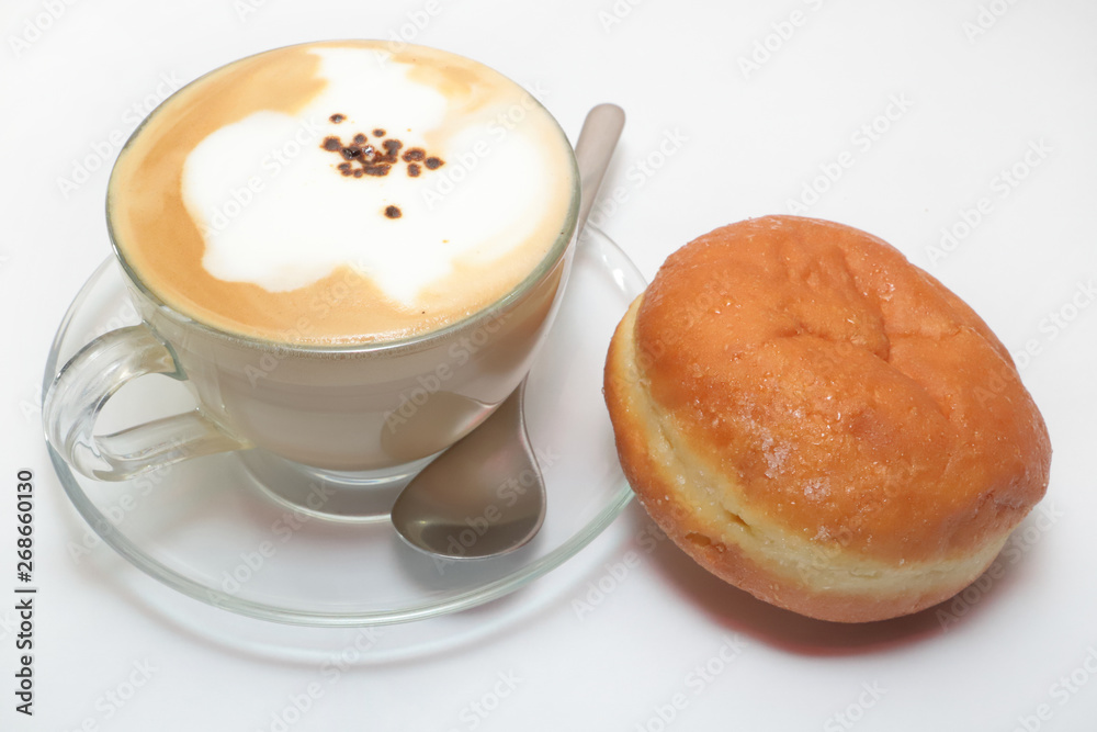 Cappuccino e krapfen su sfondo bianco, cappuccino and krapfen o white background Stock Photo | Adobe Stock