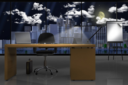 Elegante Sfondo Della Camera Business Lavorando In Ufficio Scrivania Città Finestra File - Immagini vettoriali stock e altre immagini di Ufficio - iStock