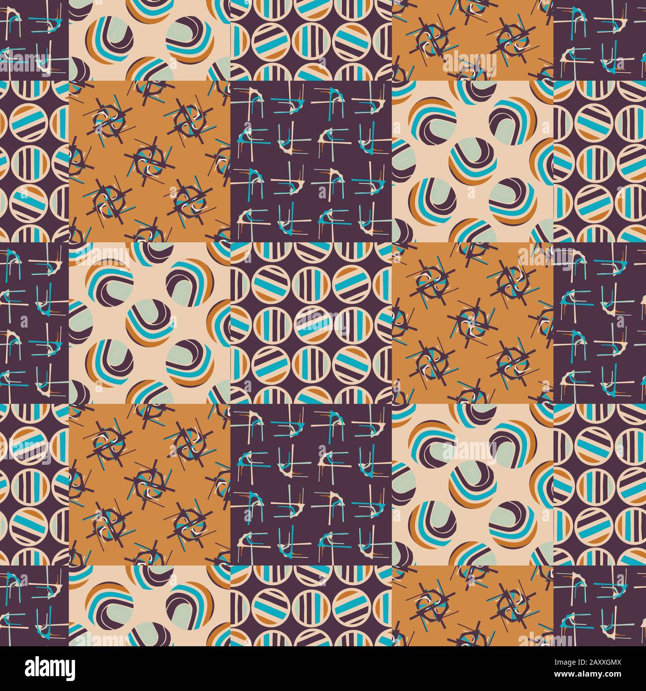 Moderno Sfondo Del Modello Vintage Di Metà Secolo. Patchwork Quilt Masculine Graphic Design. Seamless Mosaic 1960s Style Retro Geometric Wallpaper Immagine e Vettoriale - Alamy