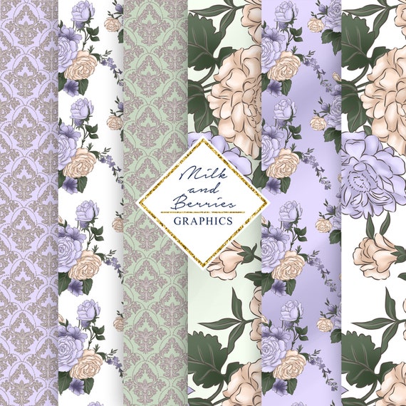 Vintage Delight: carta digitale verde viola sfondo modello - Etsy Italia