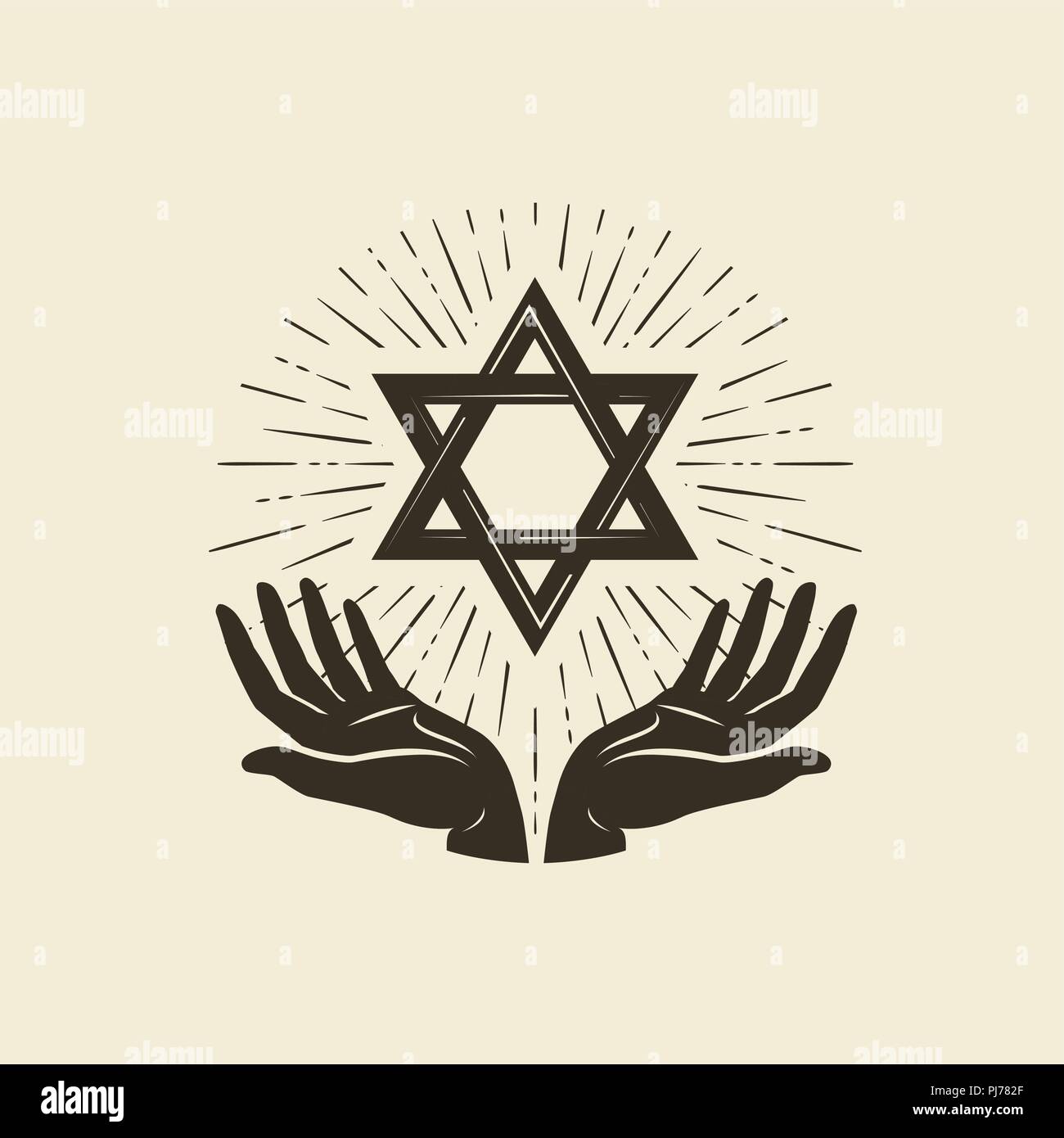 Icona del vettore giudaismo. Logo simbolo religione ebraismo. Icona ebraica in bianco e nero Immagine e Vettoriale - Alamy