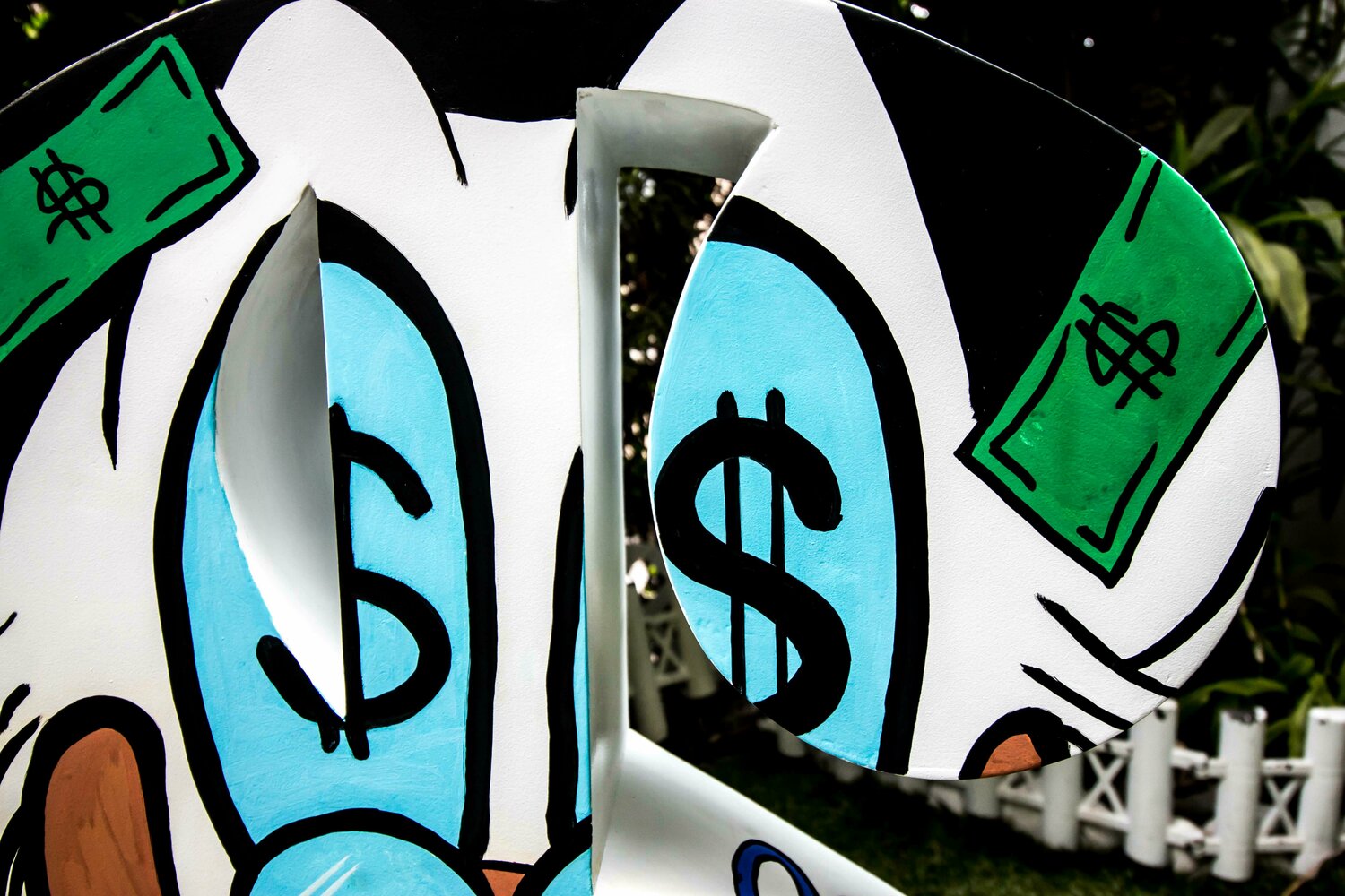 Dollar Sculpture ft. Scrooge, Donald Duck, Mr. Monopoly from Currency Street Art Series by Carlos Pun (2020) : Sculpture Acrylic, Wood - SINGULART