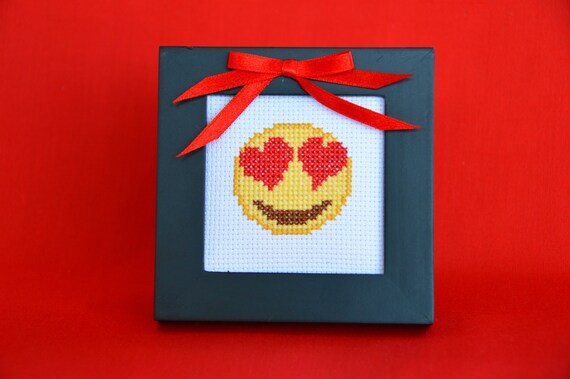 Kissing Heart and Heart Eyes Emoji Cross Stitch Handmade - Etsy Italia