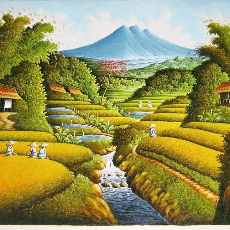 Jual Lukisan Pemandangan Sawah Terasering Panen Padi yang Sangat Indah | Shopee Indonesia