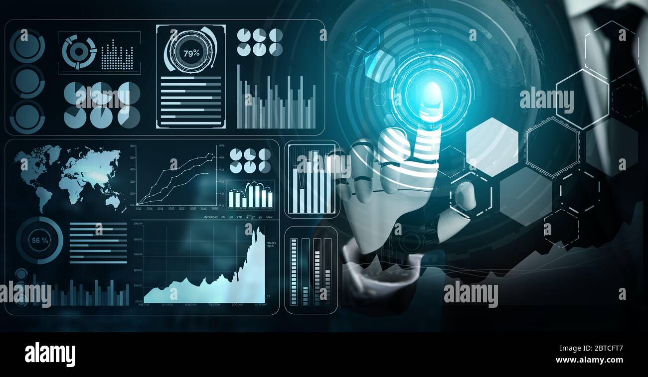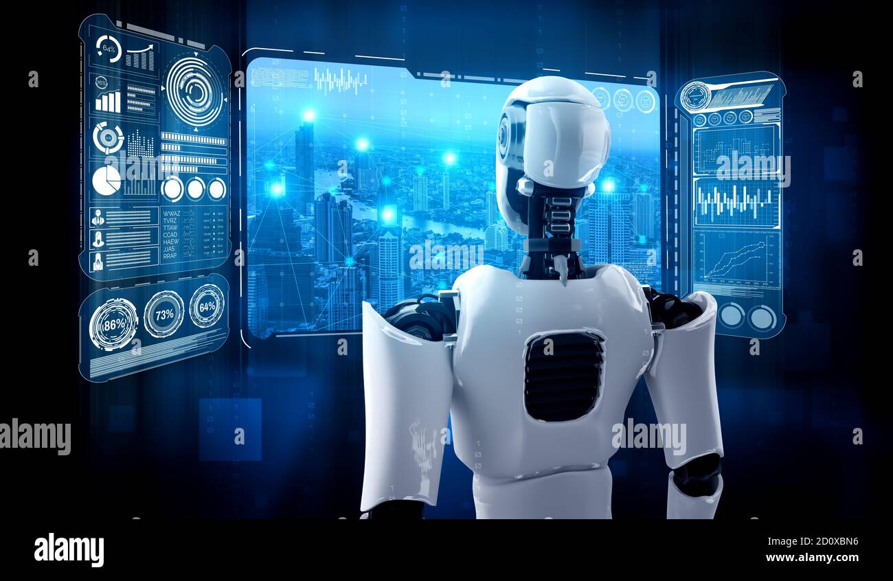 3D rendering sviluppo futuristico della tecnologia dei robot, intelligenza artificiale ai e concetto di apprendimento automatico. Ricerca scientifica bionica robotica globale Foto stock - Alamy