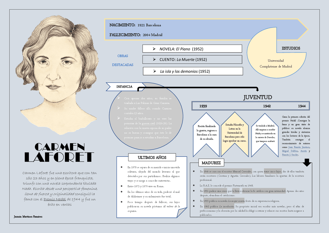 Infografía sobre la autora Carmen Laforet | Esquemas y mapas conceptuales de Lengua y Literatura | Docsity