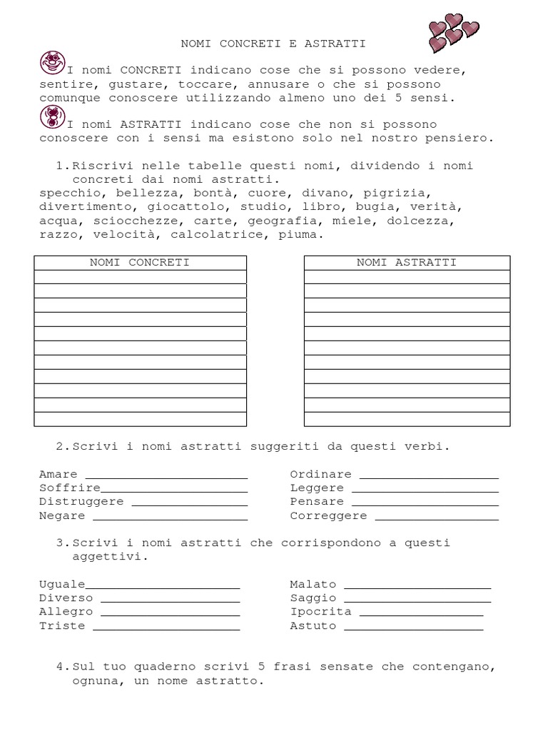 Nomi Concreti e Nomi Astratti (Schede Didattiche) | portalebambini.it