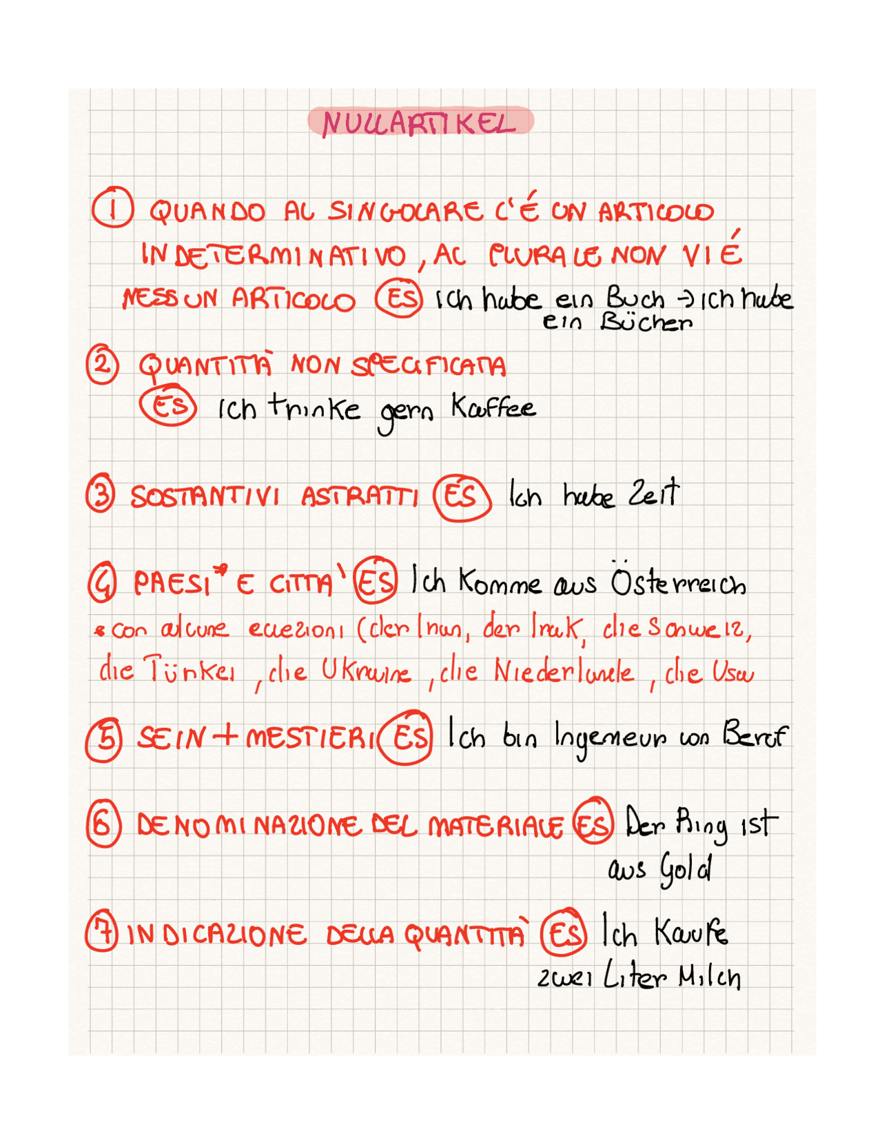 Nullartikel lingua tedesca | Esquemas y mapas conceptuales de Idioma Alemán | Docsity
