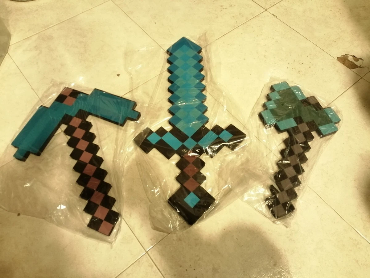 Set Armi Minecraft Foam Pvc Spada Diamante + Ascia Diamante + Piccone Diamante | eBay