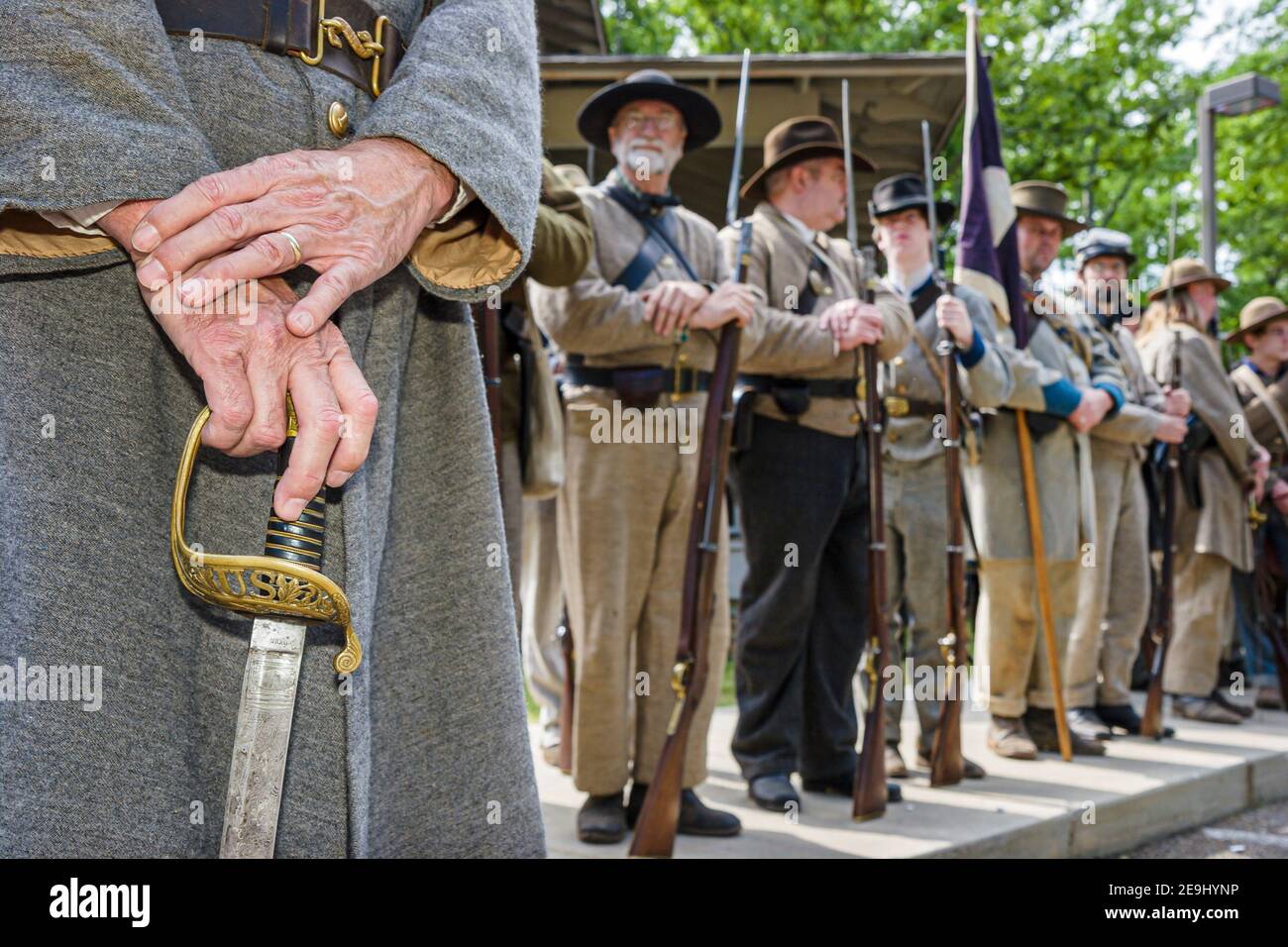 Alabama Marbury Confederate Memorial Park, i soldati in costume della Guerra civile che detengono spade Foto stock - Alamy