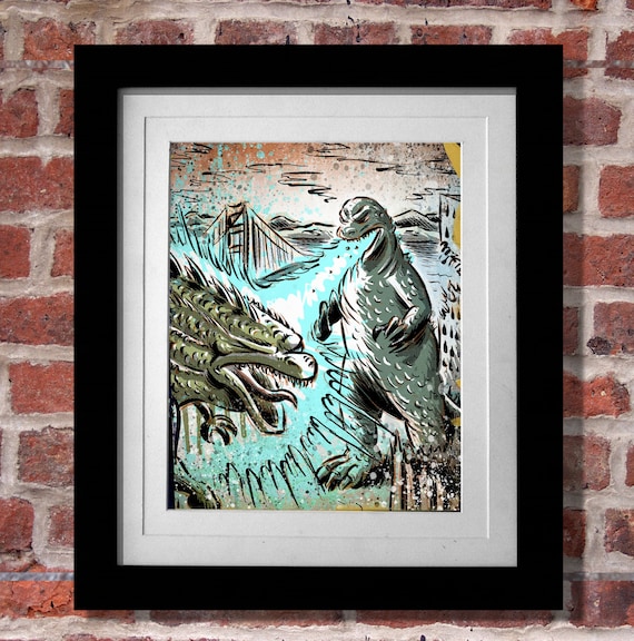 Godzilla japan VS Godzilla USA Art Print Illustration - Etsy