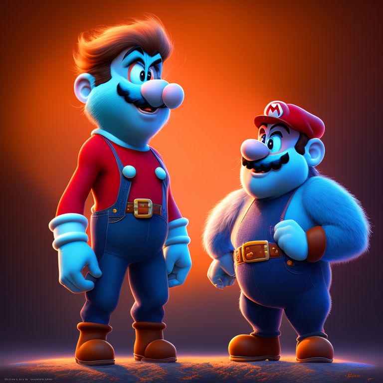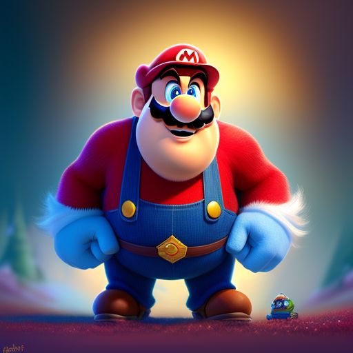 Drafty-shrew643: Super Mario smallfoot, standing centered, Pixar style, 3d style, Disney style, 8k, Beautiful