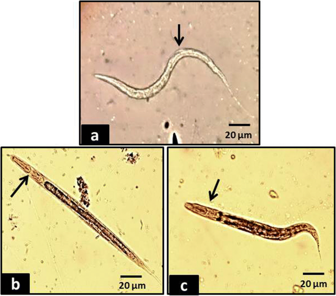 Microscopic appearance of Strongyloides stercoralis: a) first-stage... | Download Scientific Diagram