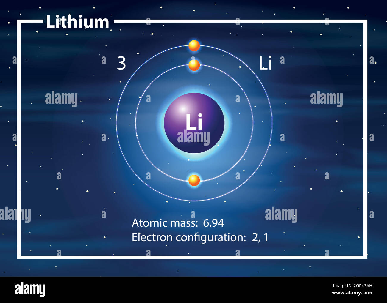 Litio elemento chimico la struttura atomica immagine sfondo Foto stock - Alamy