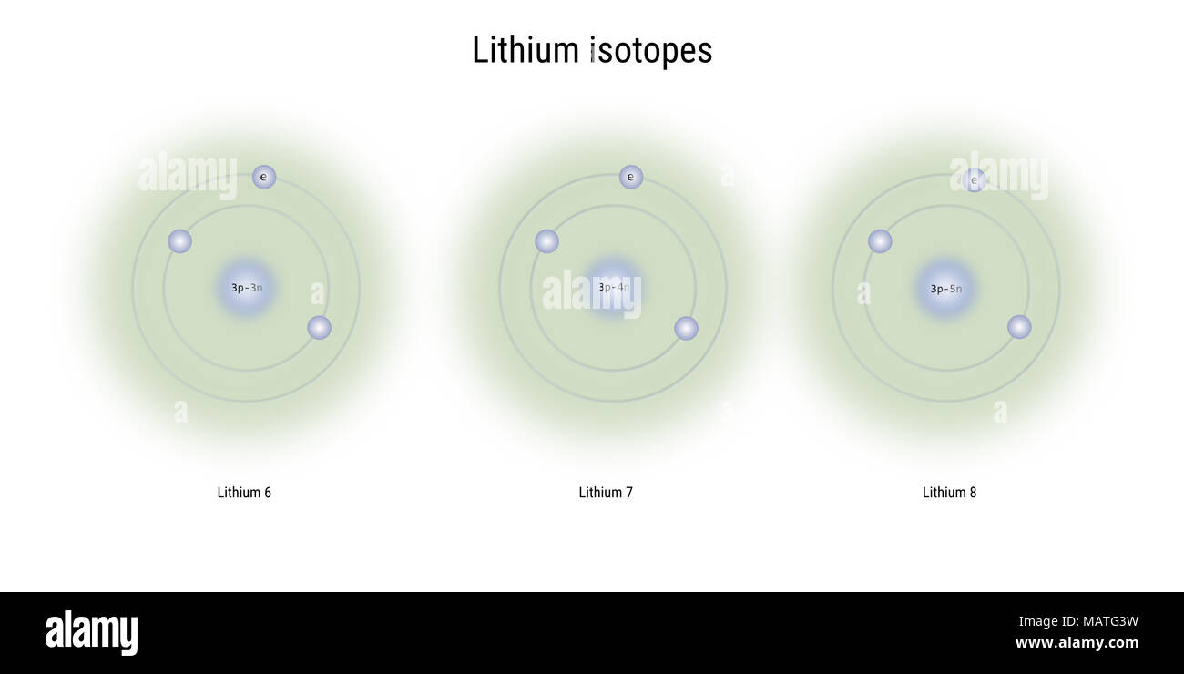Gli isotopi di litio struttura atomica - le particelle elementari teoria fisica Foto stock - Alamy