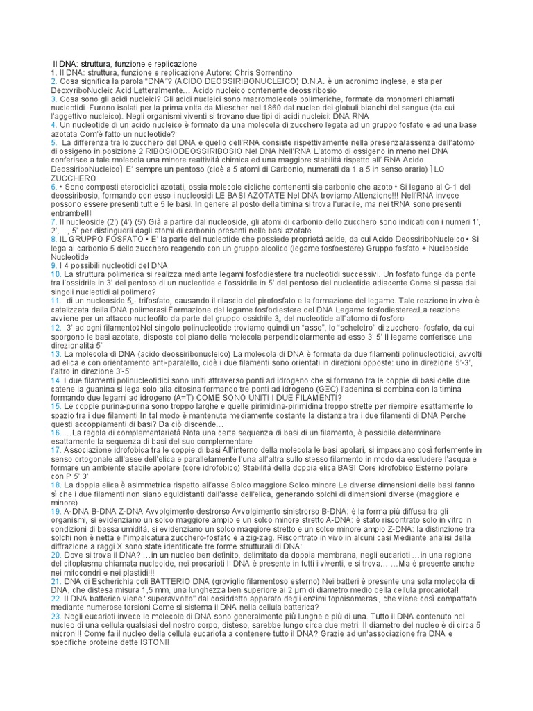 1 - Appunti su DNA - Struttura del DNA I La struttura del DNA fu scoperta da Watson e Crick a - Studocu