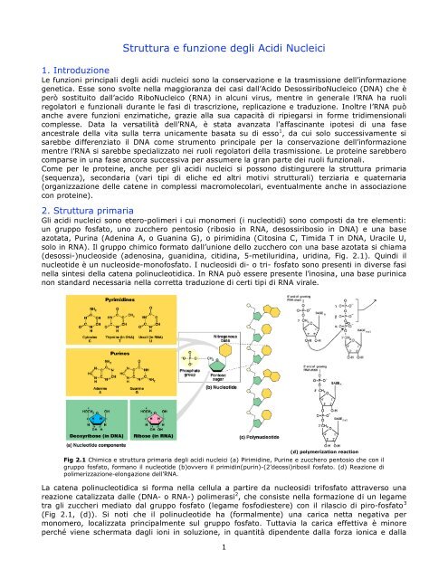 Appunti su funzione e struttura degli acidi nucleici | Appunti di Biologia | Docsity