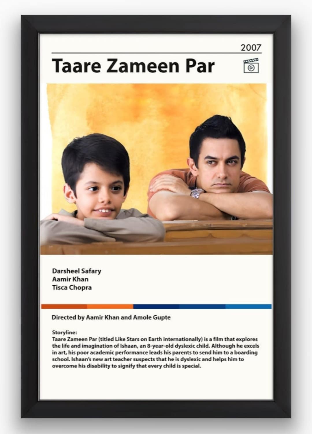 Tallenge - Taare Zameen Par- Aamir Khan - Bollywood Hindi Movie Poster - Extra Large Poster Framed (Paper,24x34 inches, MultiColour) : Amazon.in: Home & Kitchen