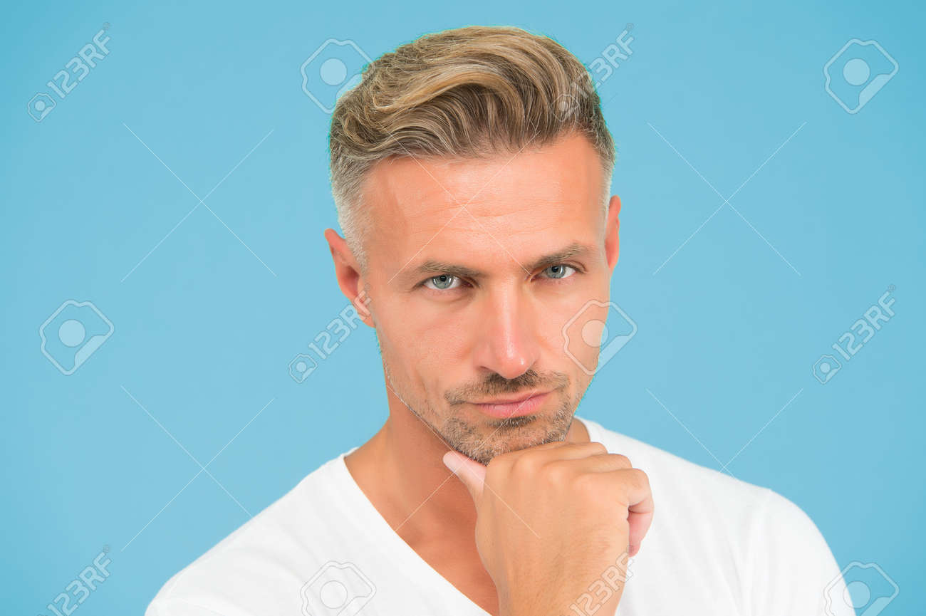 Immagini Stock - Cura Personale. Ragazzo Serio E Ben Curato. Bel Maschio Ha Una Pelle Perfetta Sul Viso. Nuovo Taglio Di Capelli Colorante. Colorazione Dei Capelli Brizzolati Dal Parrucchiere. Bellezza E Salute