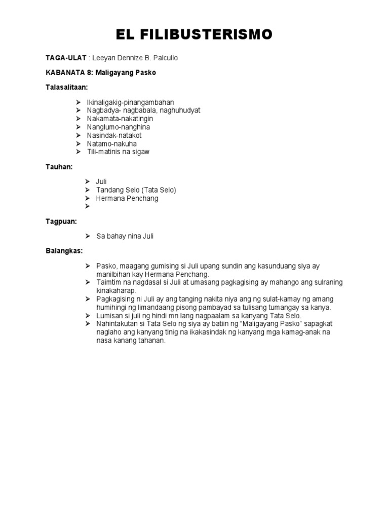 SOLUTION: El filibusterismo summary - Studypool