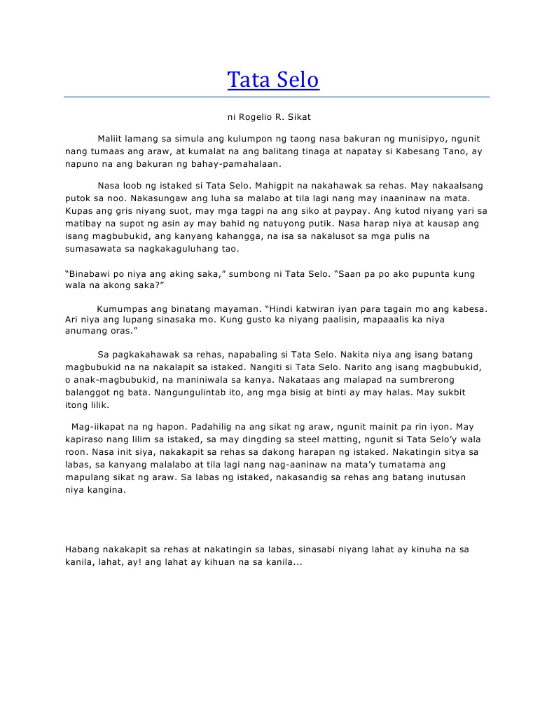 Tata Selo ( Maikling Kuwento) | PPT