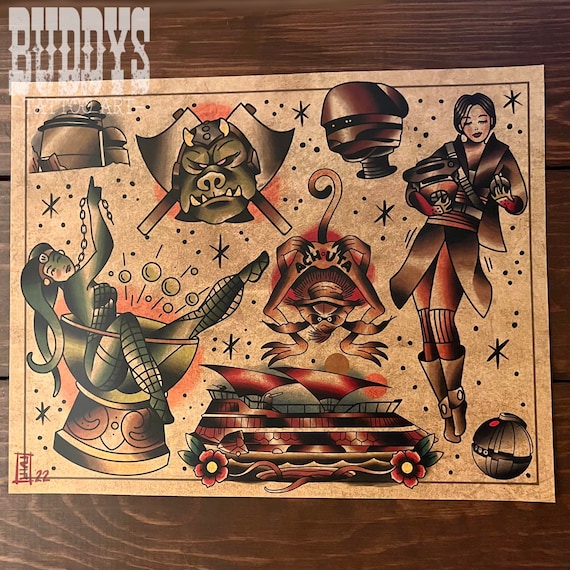 Return Of The Jedi Tattoo Traditional Americana Flash Sheet - Etsy Italia