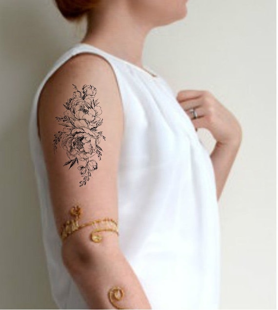 Amazon.com: miaocheng 5 pcs Rose Peony Flower Girls Temporary Tattoos for Women Waterproof Black Tattoo Stickers 3D Blossom Lady Shoulder DIY Temporary Tattoo Stickers (Color : TH399) : Beauty & Personal Care